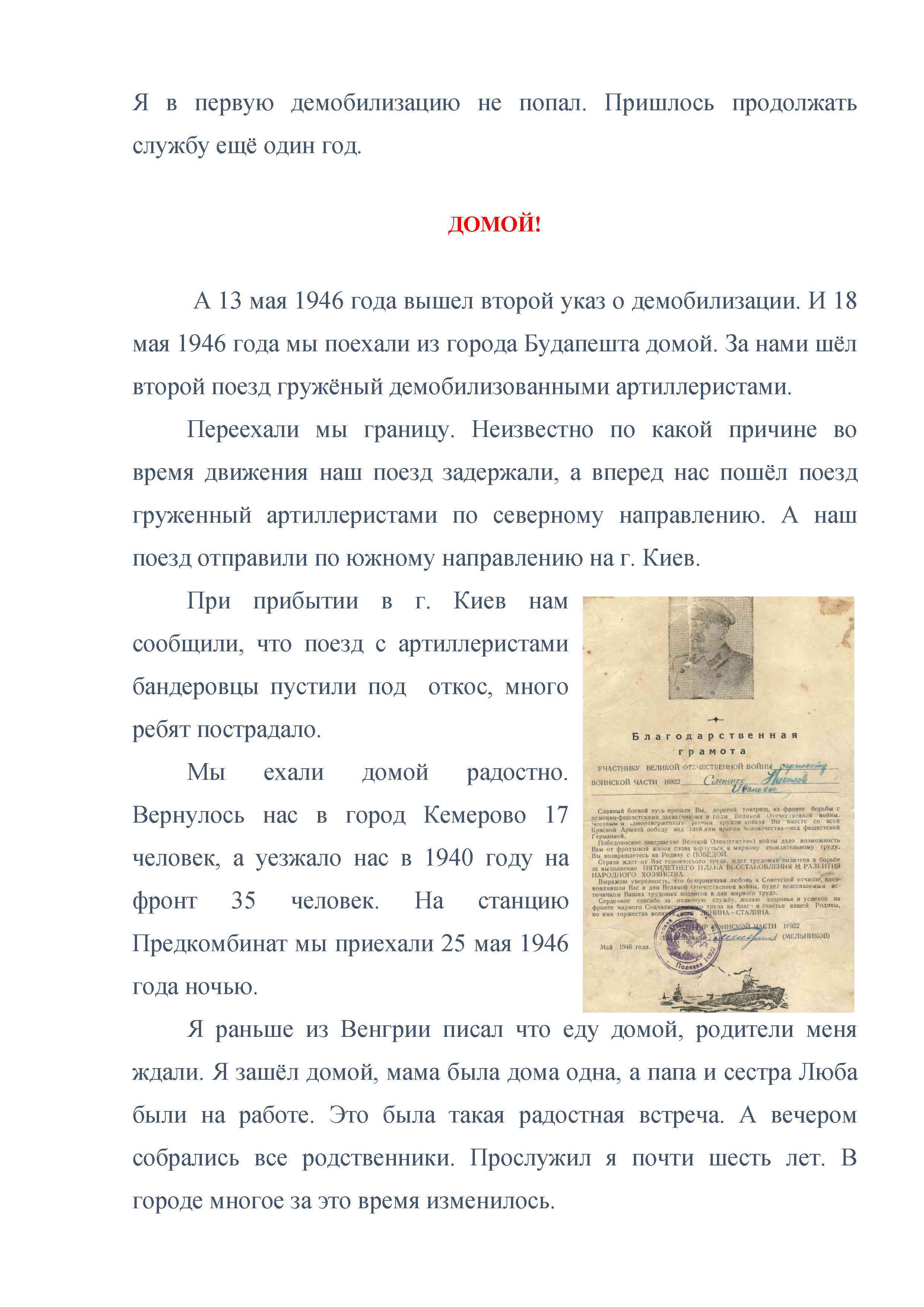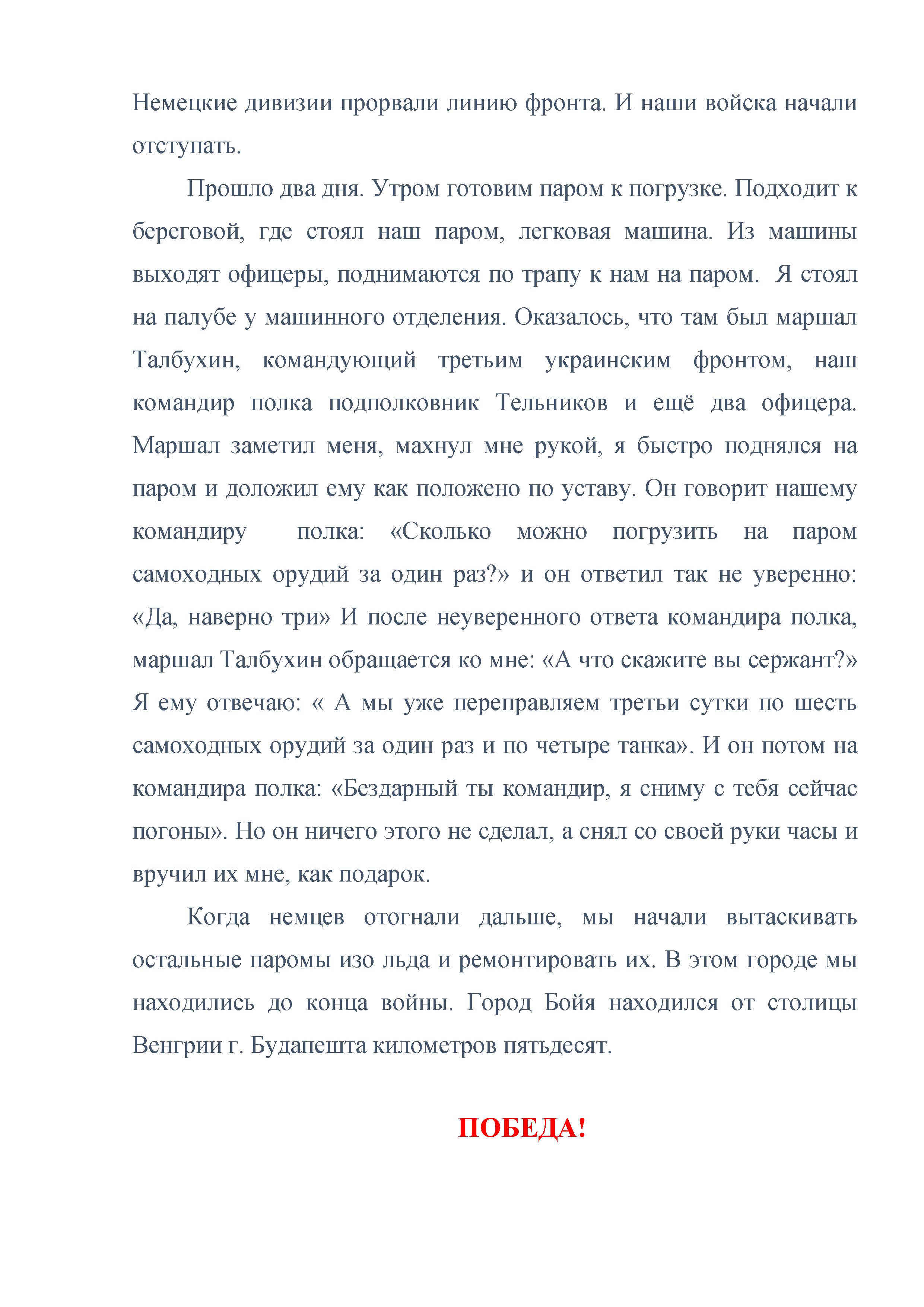 Воспоминания участника Великой Отечественной Войны Слепенко Николая Ивановича