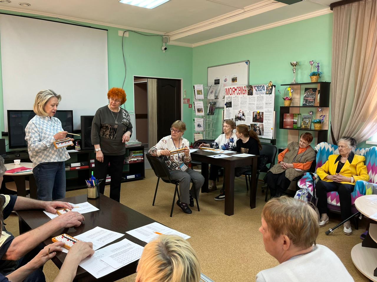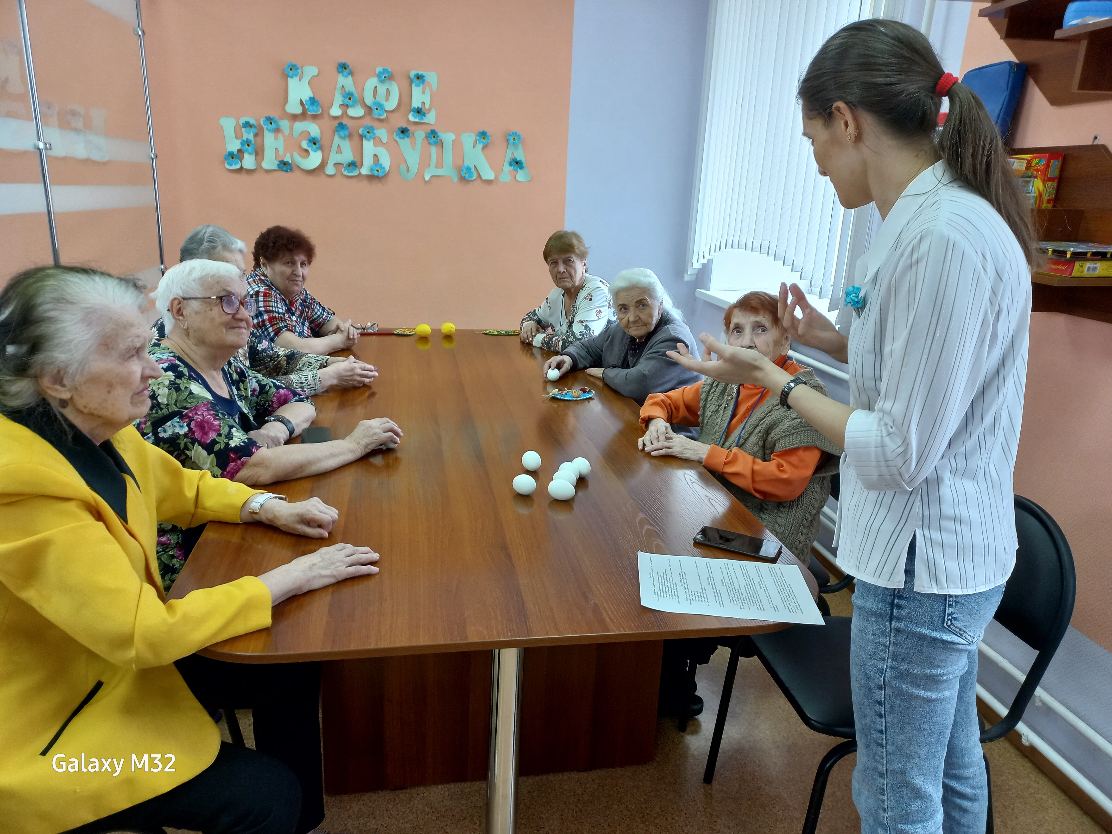 В рамках исполнения национального проекта «Демография», 19.04.2024 в отделении дневного пребывания прошло мероприятие Кафе «Альцгеймер», где психолог провела игры, которые развивают ловкость, смекалку, сенсомоторную координацию, улучшают психоэмоциональное состояние. Пожилые люди решали логические задачи, выполняли нейроупражнения, изучили упражнение « Плейстик», которое содержит элементы танца, подвижных игр с мячом и лозаткой. В завершении мероприятия состоялось традиционное чаепитие.