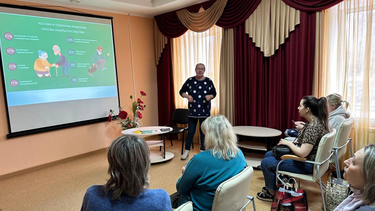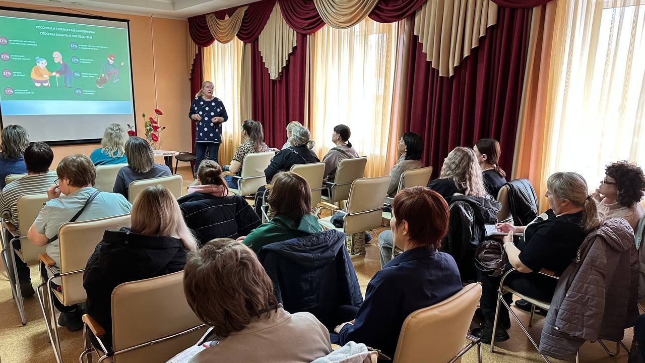 Сегодня на базе КЦСОН состоялась очередная встреча с социальными работниками учреждения на тему «Осторожно, мошенники». Коллеги узнали как избежать мошеннических схем на сайтах (в том числе сайте знакомств) и при устройстве на работу.