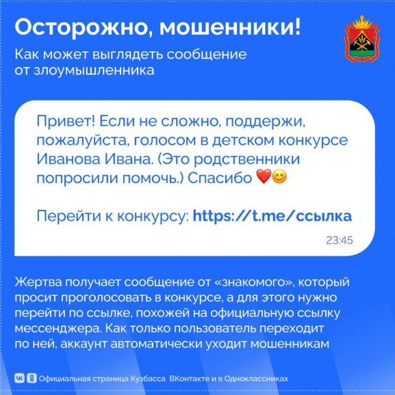 Мошенники разработали новый способ кражи аккаунтов в Telegram через фальшивые ссылки на голосование, якобы присланные знакомыми контактами. Как сообщили в Telegram-канале «Кузбасс. Официально», получив такое сообщение, жертве предлагается пройти по ссылке, которая внешне напоминает официальную страницу мессенджера, чтобы принять участие в голосовании. Однако после перехода по этой ссылке аккаунт сразу же попадает под контроль злоумышленников.