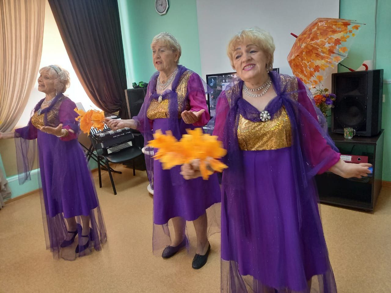 Получателям социальных услуг отделения дневного пребывания МАУ «КЦСОН Кировского района» ансамбль Сибиряночки представил новую концертную программу "Осень жизни, как и осень года...", посвященную Дню пожилого человека.