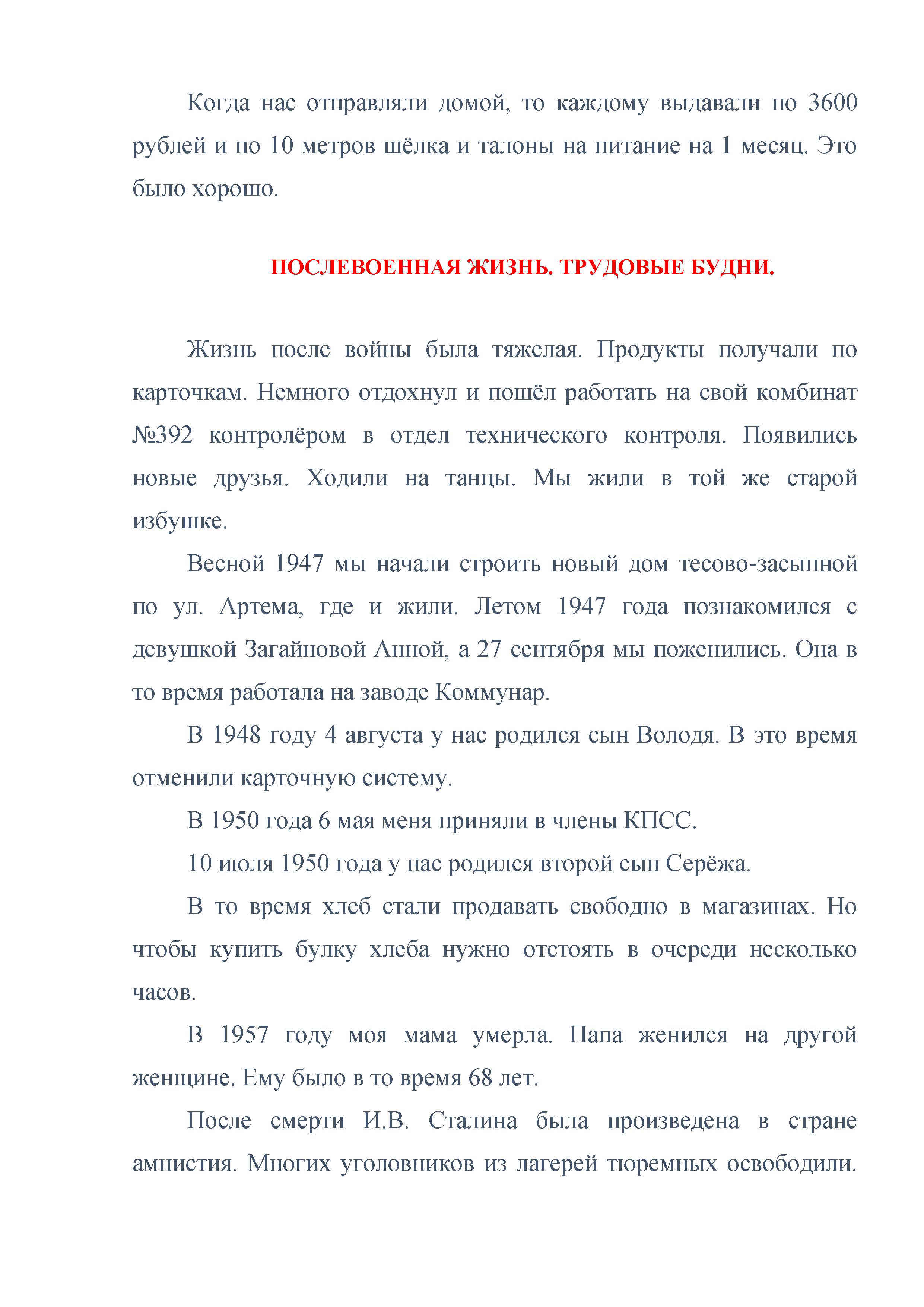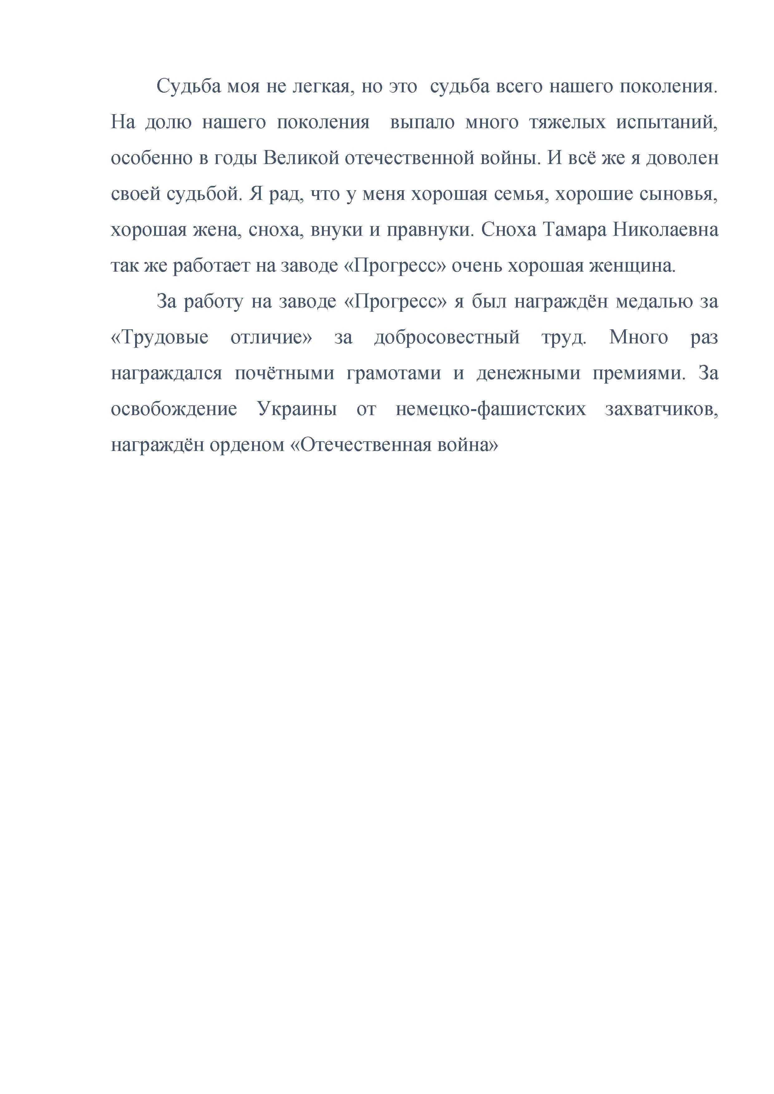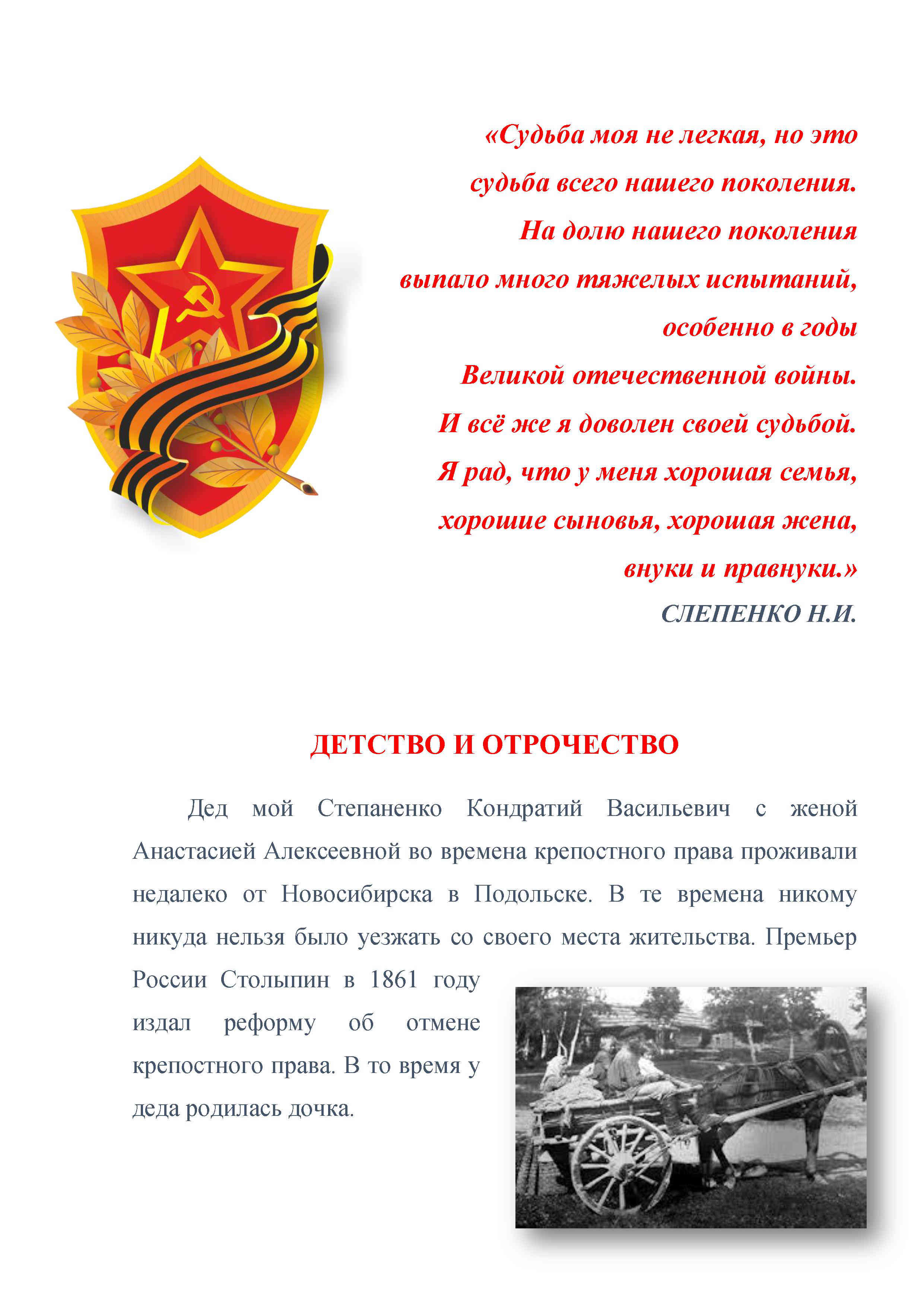 Воспоминания участника Великой Отечественной Войны Слепенко Николая Ивановича