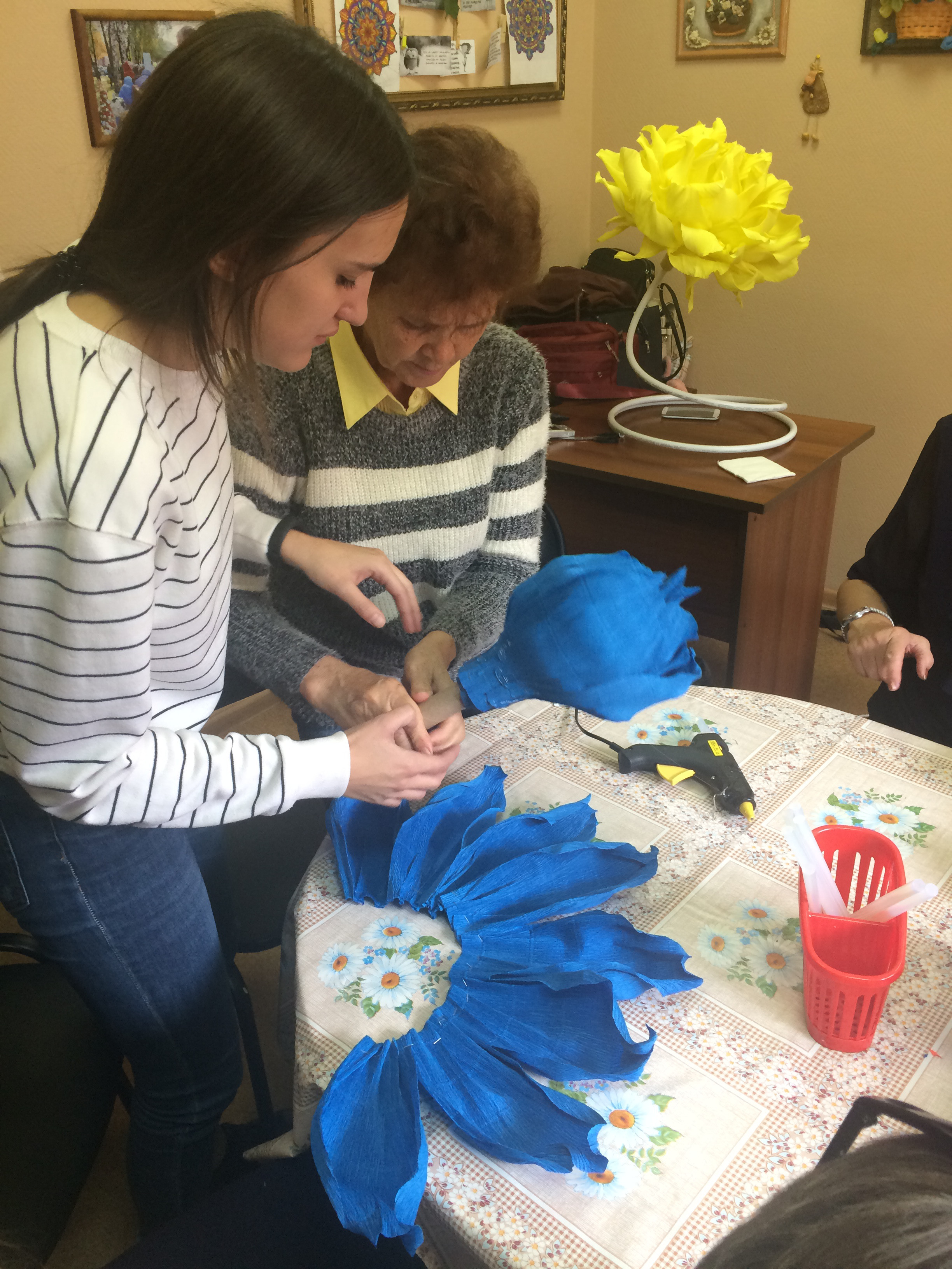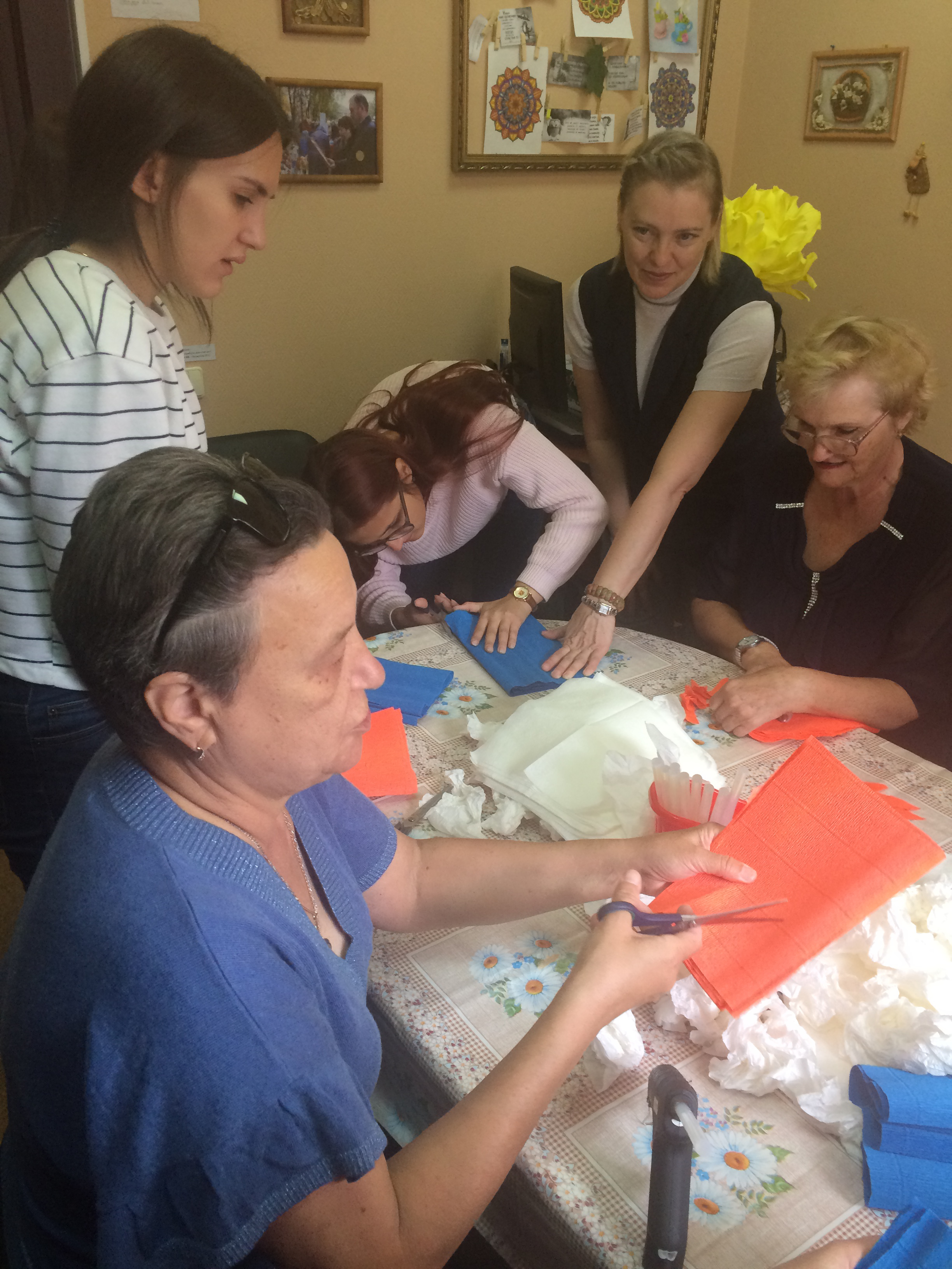25.09.2019в рамках «Круга Добра» в МАУ «КЦСОН Кировского района г. Кемерово» прошел мастер-класс по изготовлению цветов из гофрированной бумаги для студентов и пожилых людей. В данном мероприятии приняли участие пять студентов и четыре получателя услуг отделения дневного пребывания. 27 сентября цветы были переданы воспитанникам детского сада № 167. Ребята подарили получателям социальных услуг нашего Центра и студентам праздничный концерт. Таким образом, «Круг Добра» замкнулся..