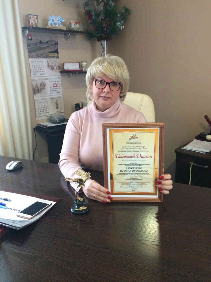 7 декабря 2019 года, в рамках Женской Ассамблеи в Москве в Большом Петровском зале Президент – отеля, состоялась церемония награждения победителей XV Всероссийского конкурса деловых женщин «Успех» 2019. Поздравляем директора МАУ «КЦСОН Кировского района г. Кемерово» Наталью Викторовну Филимонову с победой в номинации «Лучшая представительница деловых женщин России» в области социальной сферы. Наталья Викторовна была награждена Почетным дипломом и Премией общественного признания «Золотая птица».