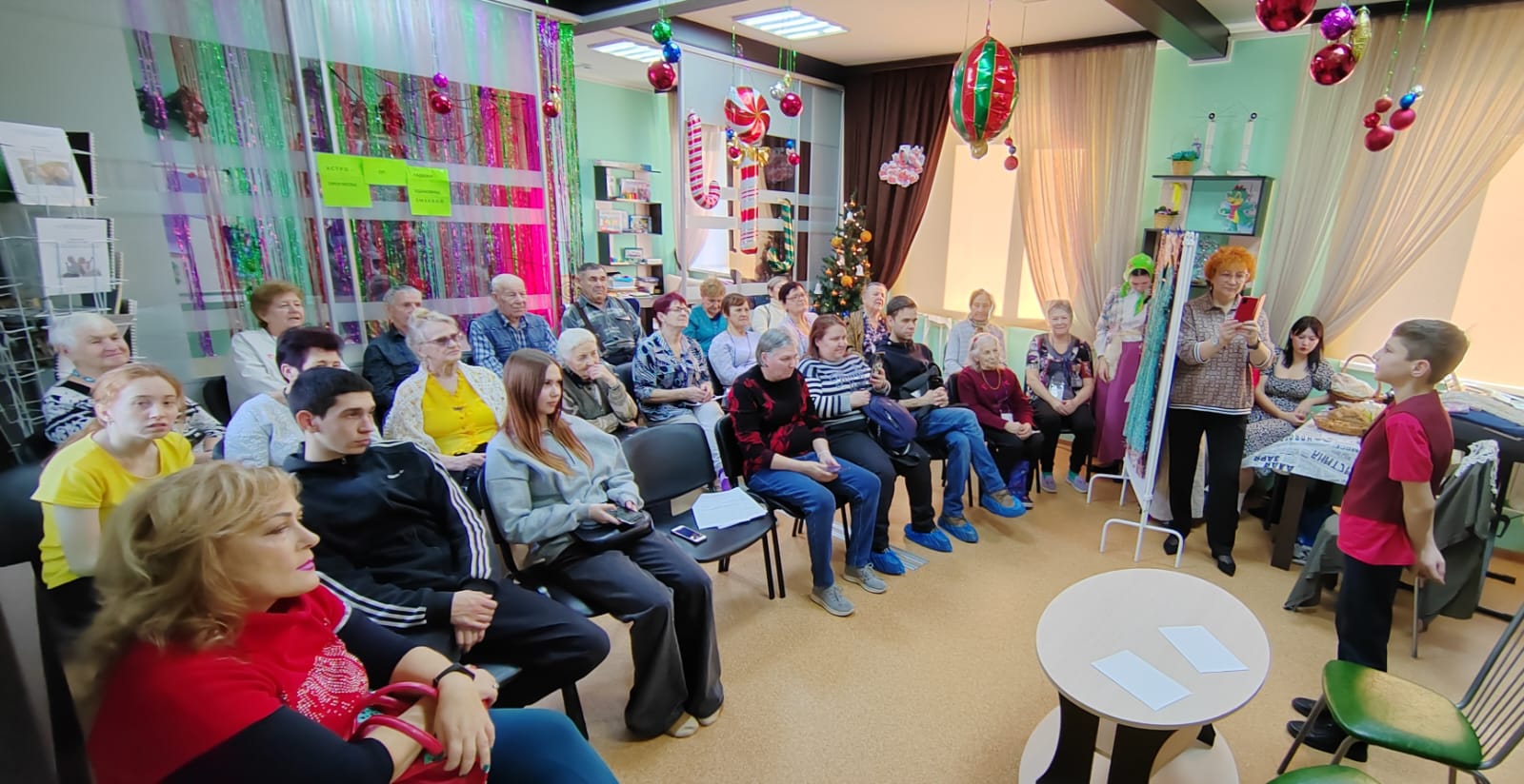 20 декабря в отделении дневного пребывания МАУ «КЦСОН Кировского района г. Кемерово» традиционно свое творчество представили волонтеры, воспитанники детского дома «Доверие». Ребята презентовали яркую программу с песнями, танцами и чтением стихов.