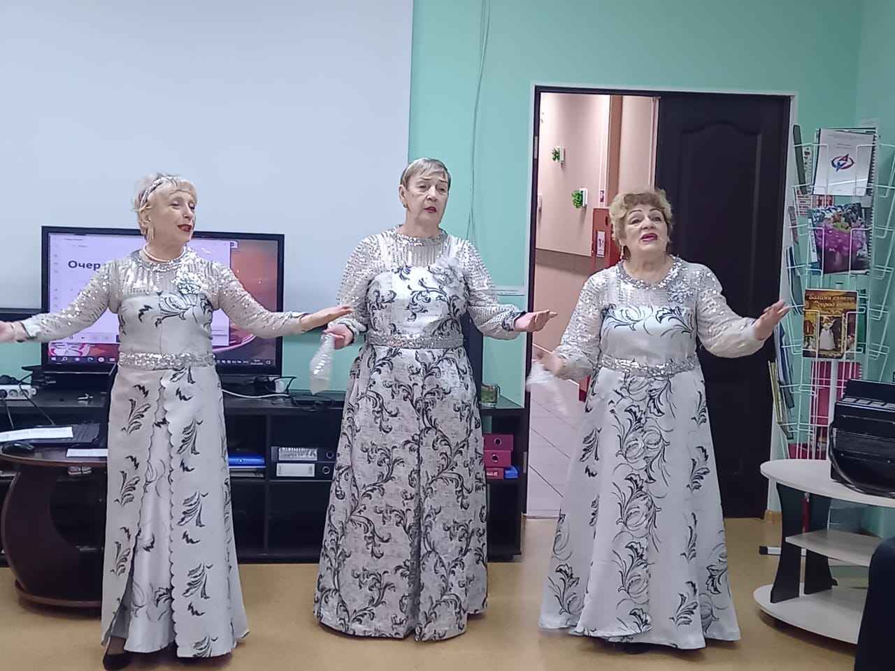 В преддверии празднования 80-летия Великой Победы, 27 февраля трио Сибиряночка, участницы клуба Осенний бриз МАУ «КЦСОН Кировского района» г. Кемерово провели музыкально-танцевальный марафон «Споемте, друзья...» с получателями социальных услуг отделения дневного пребывания. Участники совместно с гостями исполняли песни военных лет и танцевали.