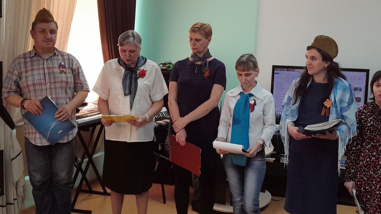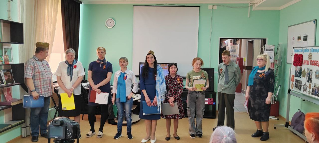 Сегодня инклюзивный, музыкально-театральный клуб Бригантина МАУ «КЦСОН Кировского района г. Кемерово», под руководством Кручининой О.К. представил новую постановку «Песни опаленные войной», посвященную 80-летию Победы в Великой Отечественной войне 1941-1945 гг. Получатели социальных услуг отделений дневного пребывания и социальной реабилитации, а так же сотрудники учреждения оценили по достоинству творчество артистов.