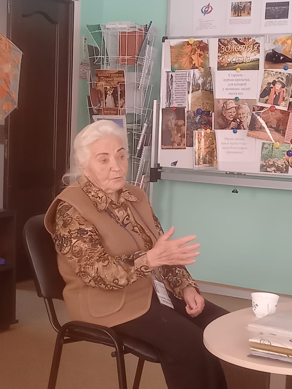 13 октября в отделении дневного пребывания Комплексного центра состоялась творческая гостиная Игнатовой Любови Григорьевны, дитя войны «Детство, стихи и война». Любовь Григорьевна проживала в период войны в Белоруссии. Затем переехала в Кузбасс. Пишет стихи и делится воспоминаниями с получателями социальных услуг и подрастающим поколением.