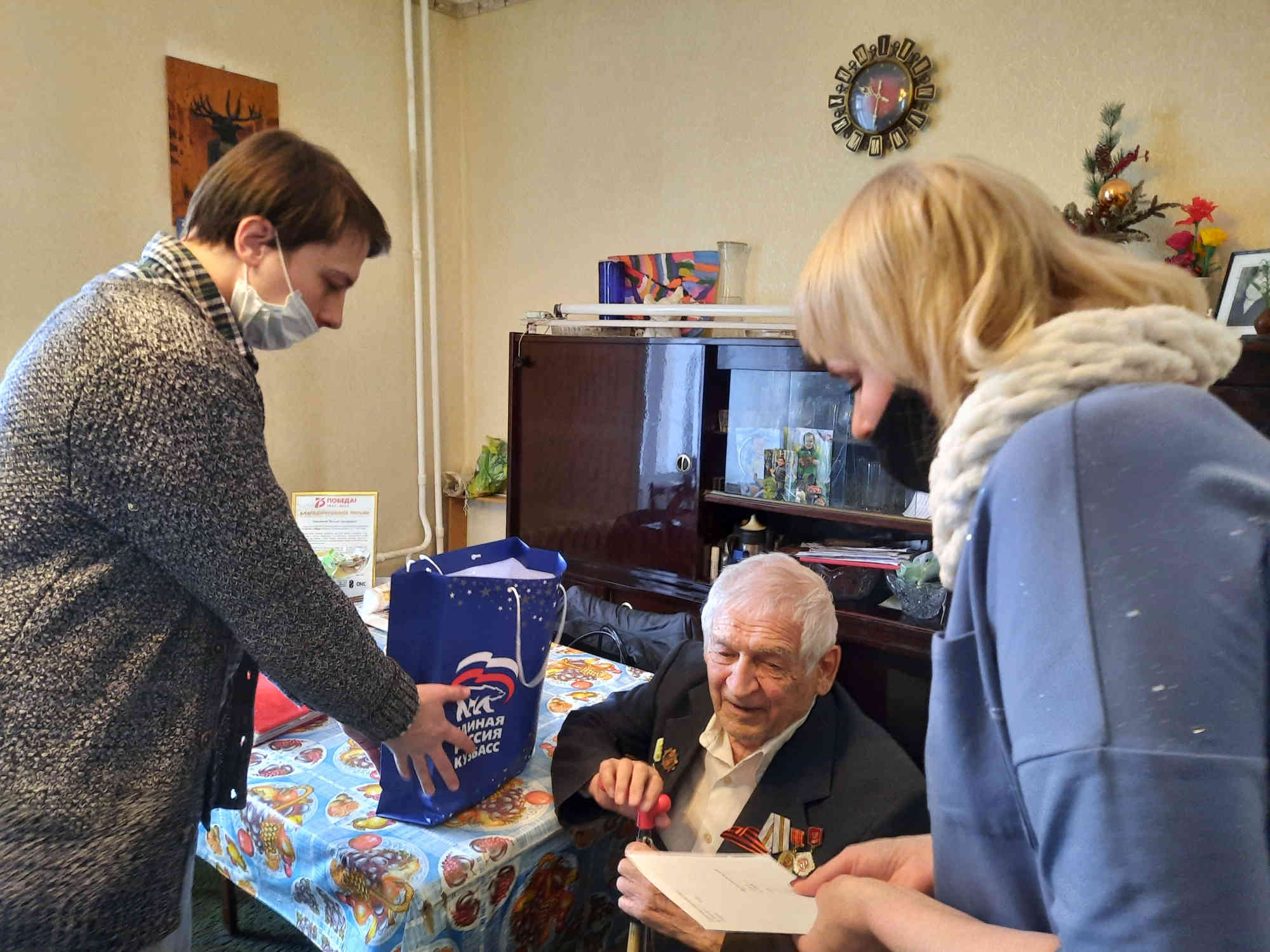 18 февраля 2021 года сотрудники МАУ «КЦСОН Кировского района г. Кемерово» совместно с членами партии Единая Россия поздравили с Днем Защитника Отечества участников Великой Отечественной войны Фролова С.К. и Николенко В.Г. Ветеранам были вручены продуктовые наборы.